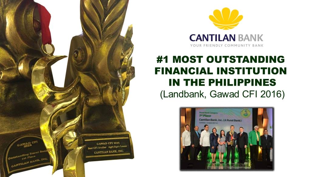 Cantilan Bank has been named as the country’s No. 1 Most Outstanding Countryside Financial Institution and Best CFI Availer for Agri-Agra Loans during the 18th edition of Gawad CFI by the Land Bank of the Philippines (Landbank), a government financial institution focusing on serving the needs of rural communities.
