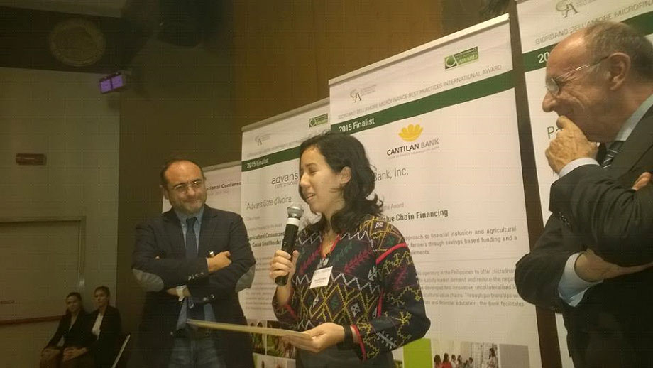 Cantilan Bank received the 2015 International Microfinance Best Practices Award from Fondazione Giordano Dell’Amore, an Italy-based foundation that promotes awareness on the key role of microfinance as a means of alleviating poverty in developing countries.