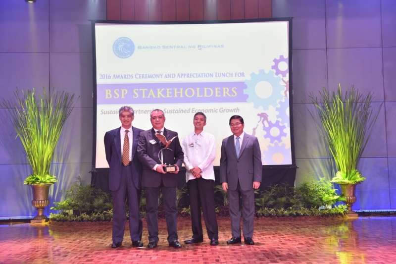 Present during the awarding ceremony were Rodel P. Geneblazo, ISB President, and Frank Hilario D. Mendoza, ISB Chief Operating Officer. The Chairman of the Monetary Board and Governor of the BSP, Amando M. Tetangco, Jr., and Monetary Board Member and Chairman of the Board of Judges, Valentin A. Araneta, led the awarding of the trophy.