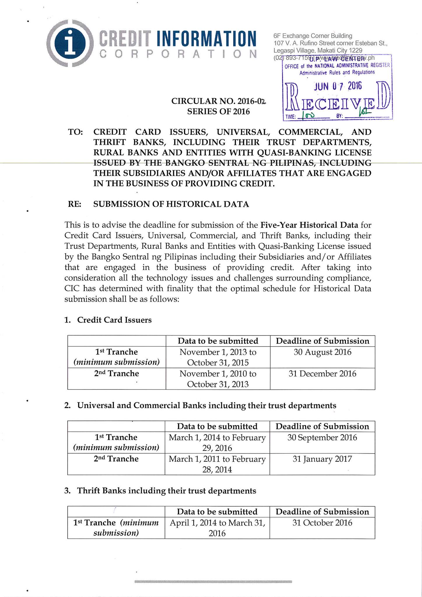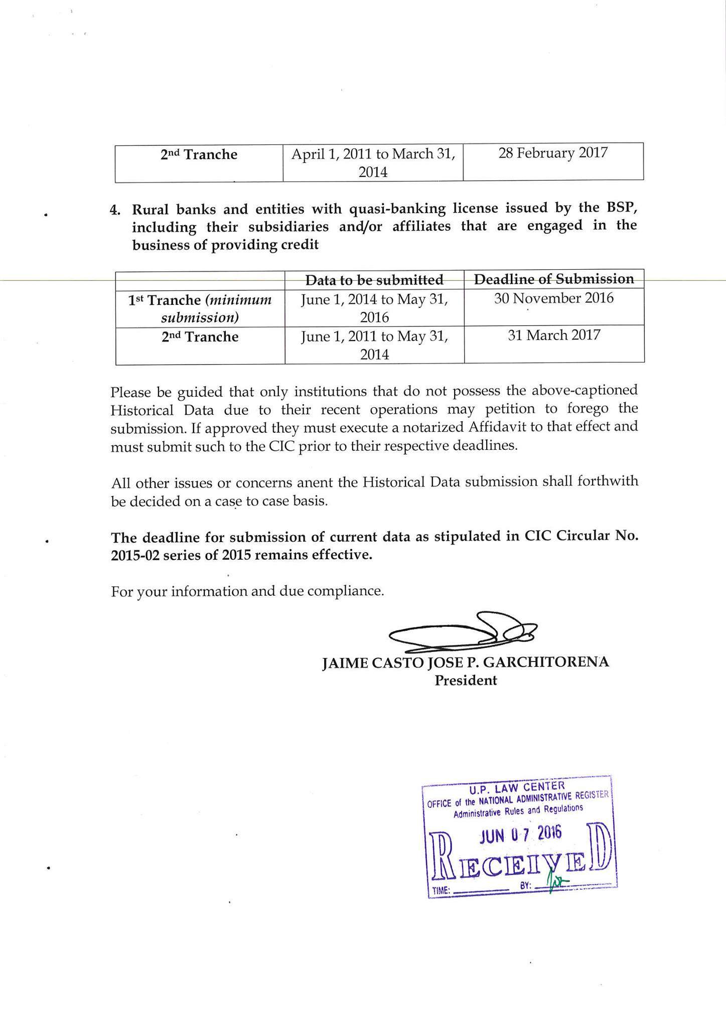 ​The deadline for submission of current data as stipulated in CIC Circular No. 2015-02 series of 2015 remains effective.”